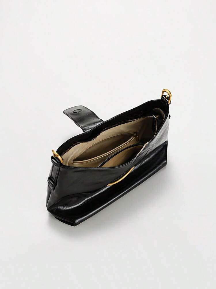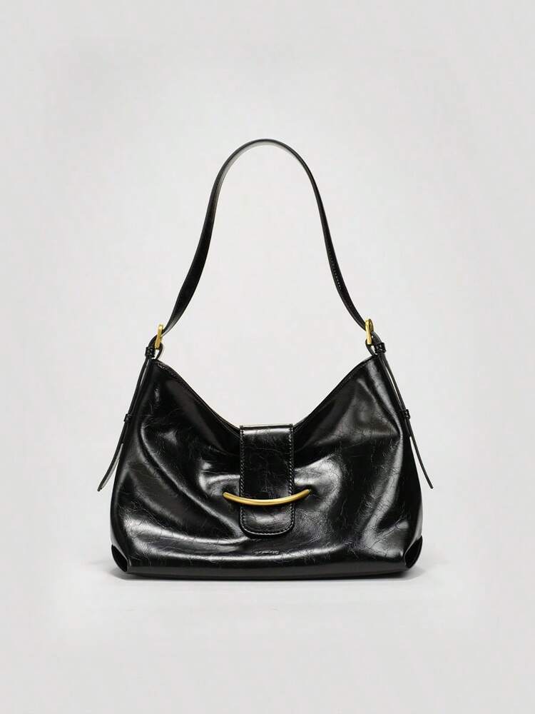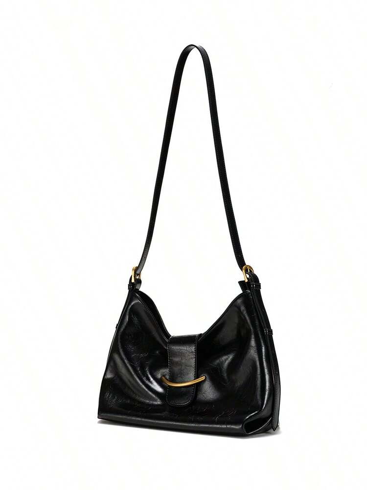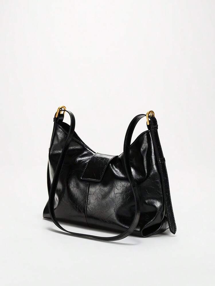 This sophisticated women's black hobo bag combines a fashionable design with high-capacity functionality, making it ideal for office, casual, and travel use. Crafted from genuine leather, it features a top handle strap and secure flap closure for easy access and safety. Its medium size offers ample space to organize daily essentials while maintaining an elegant, polished look suitable for professional settings and everyday commuting.