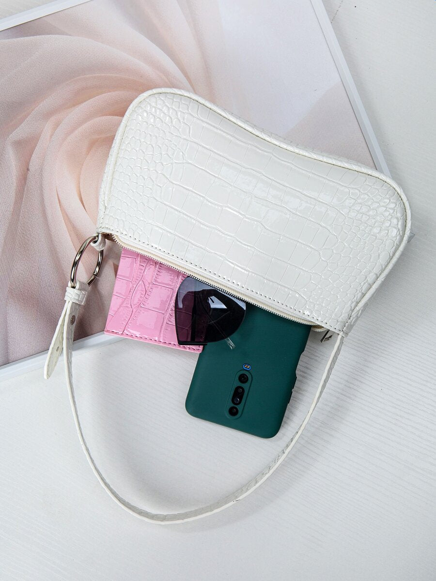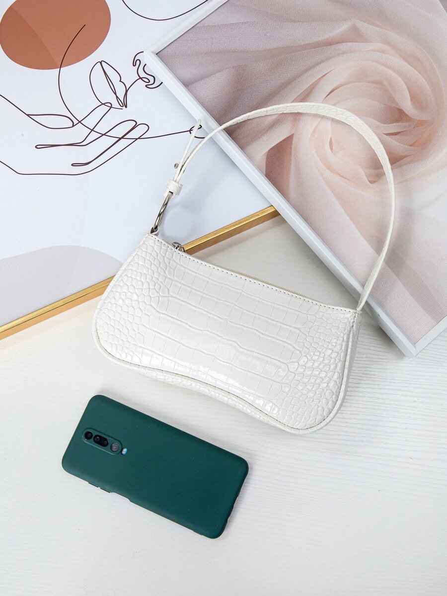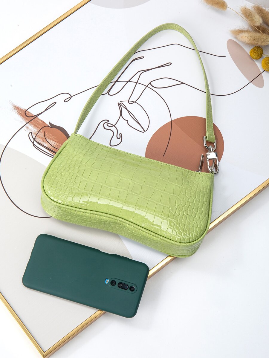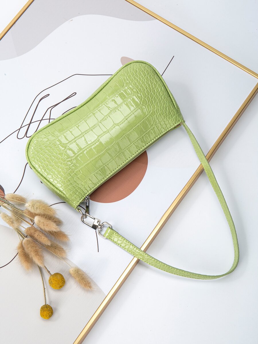 This small baguette bag combines practicality with a stylish crocodile print crafted from durable PU leather. Featuring a top handle and zipper closure, it offers secure storage for daily essentials, making it ideal for shopping, work, or travel. Its textured pattern adds a sophisticated edge, perfect for office, college, or casual use. Lightweight yet sturdy, this fashion tote balances elegance and functionality for everyday commuting.
