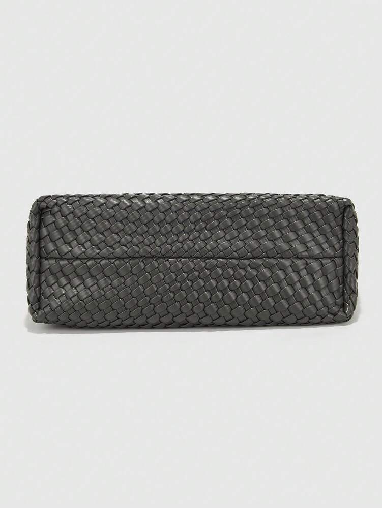 Women's Handmade Grey PU Woven Tote Bag Large Capacity Fashion Elegant Versatile Shoulder Handbag Casual Gift Mom Daily Travel Use Purse